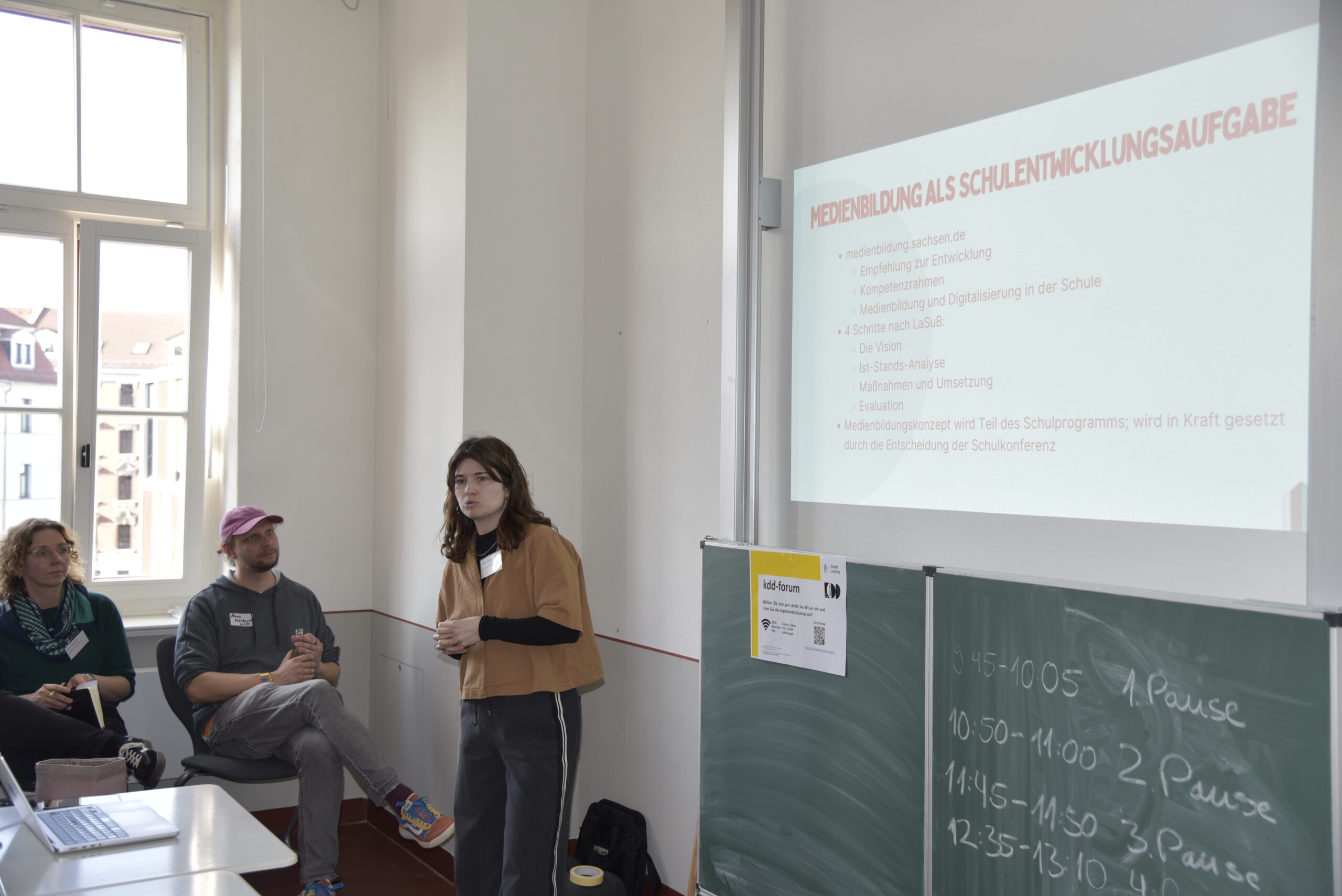 Auch Schülerinnen und Schüler waren aktiv in das Forum eingebunden. In den Impulsen zu Medienscouts-Initiativen an Leipziger Schulen wurde sichtbar, wie wichtig ihre Perspektiven und ihre Mitgestaltung und Mitbestimmung für schulische Entwicklungsprozesse sind. Damit wurde das Forum auch zu einem Ort, an dem Beteiligung, Verantwortung und Lernen auf Augenhöhe erfahrbar wurden.
